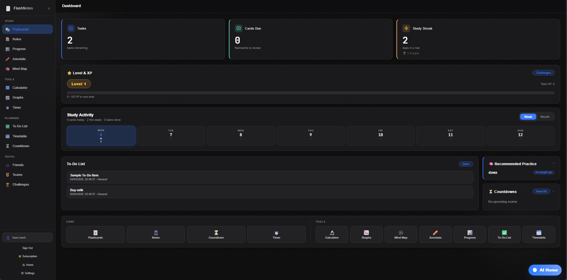 An all in 1 revision website (soon to be app) with flashcards, notes, revision timetable, timer, ai (question generation and marking and generation of notes) and much more