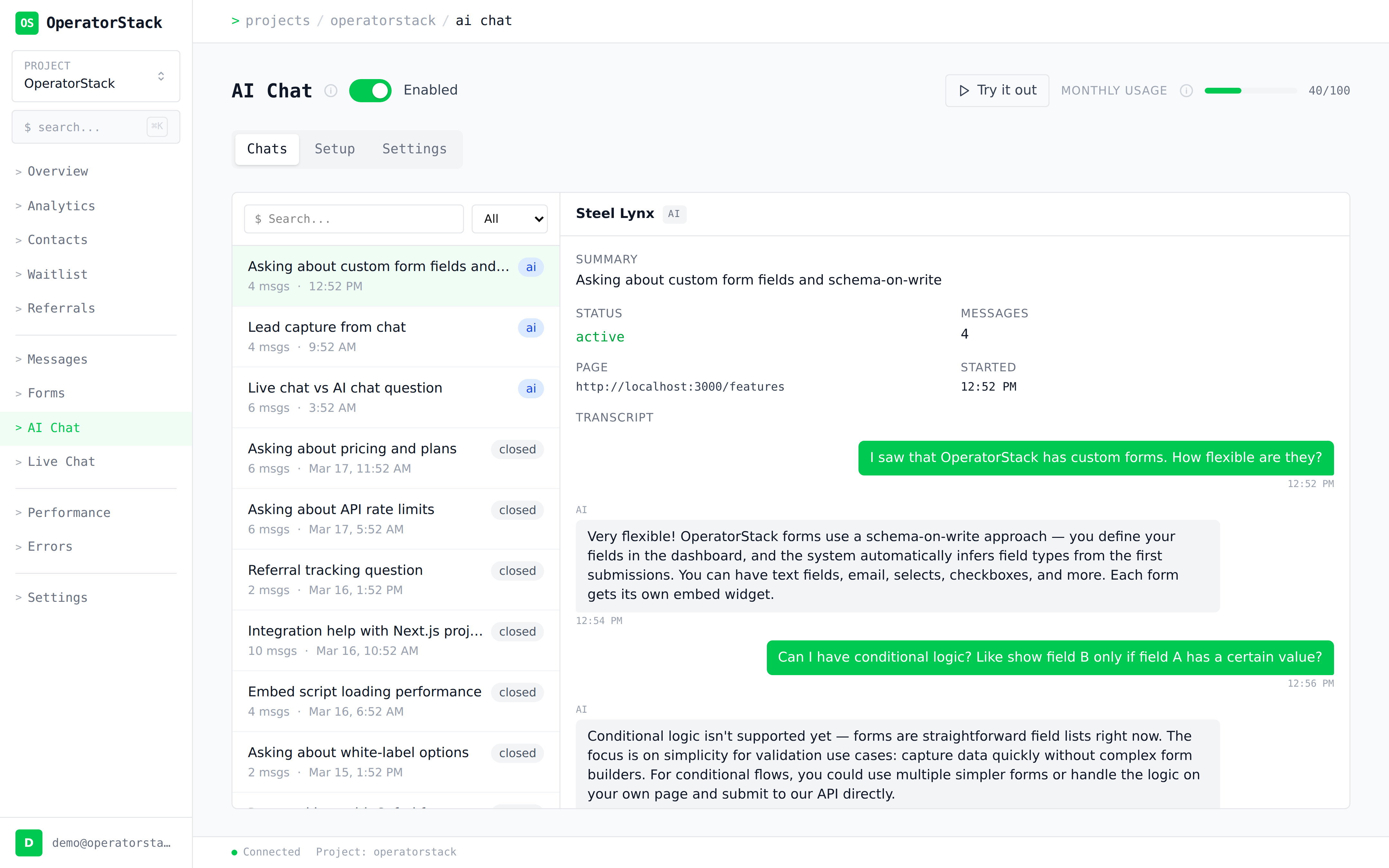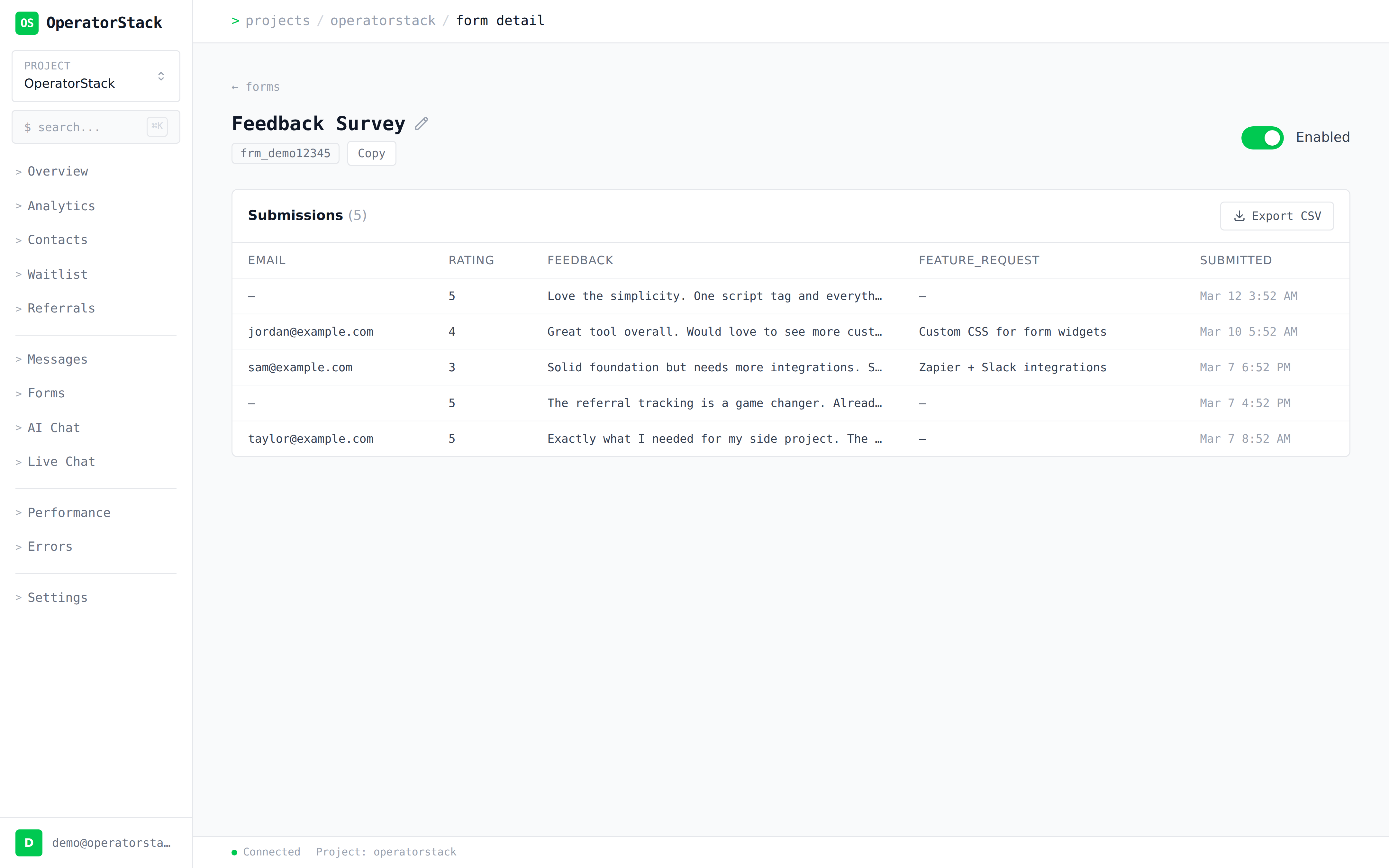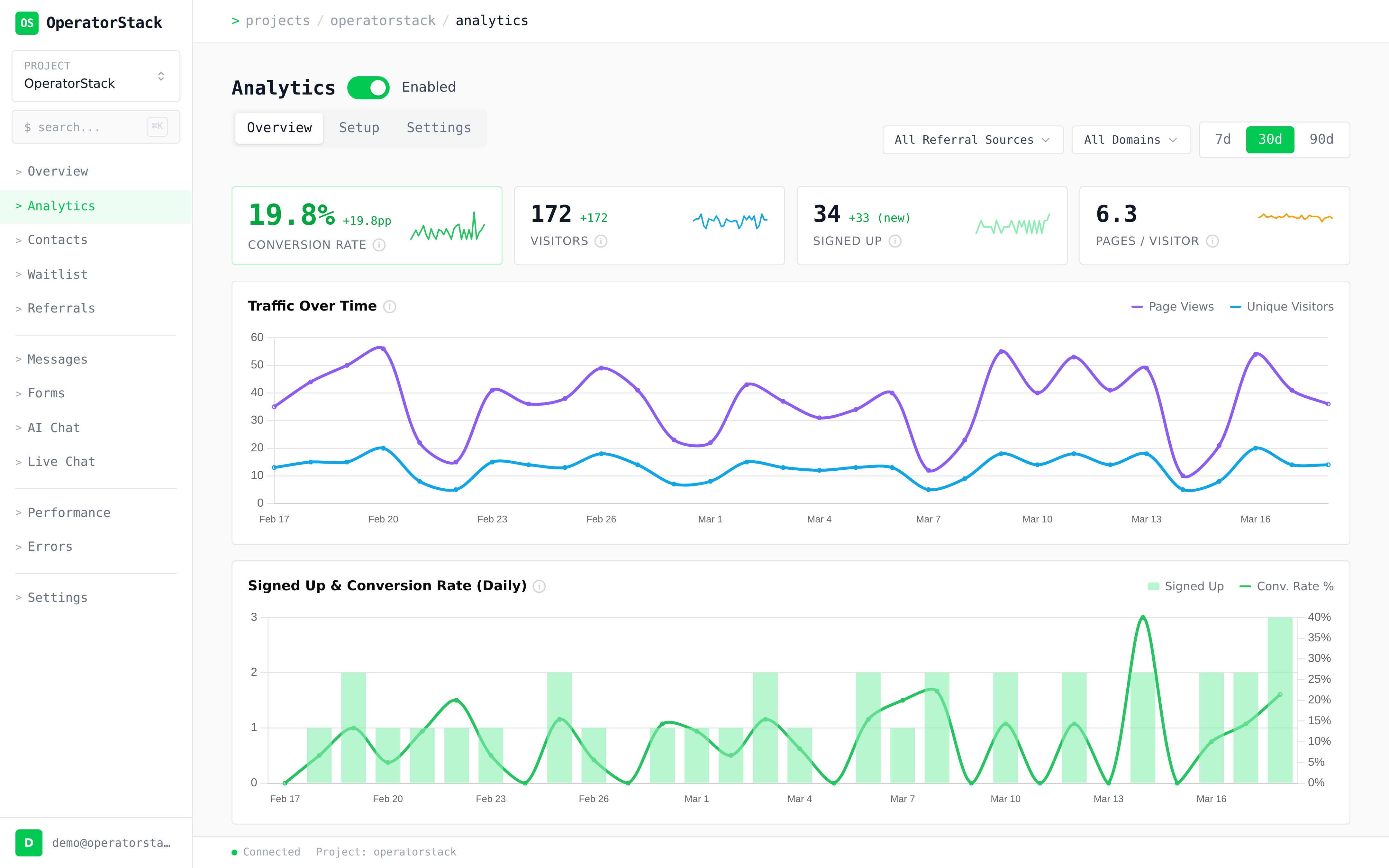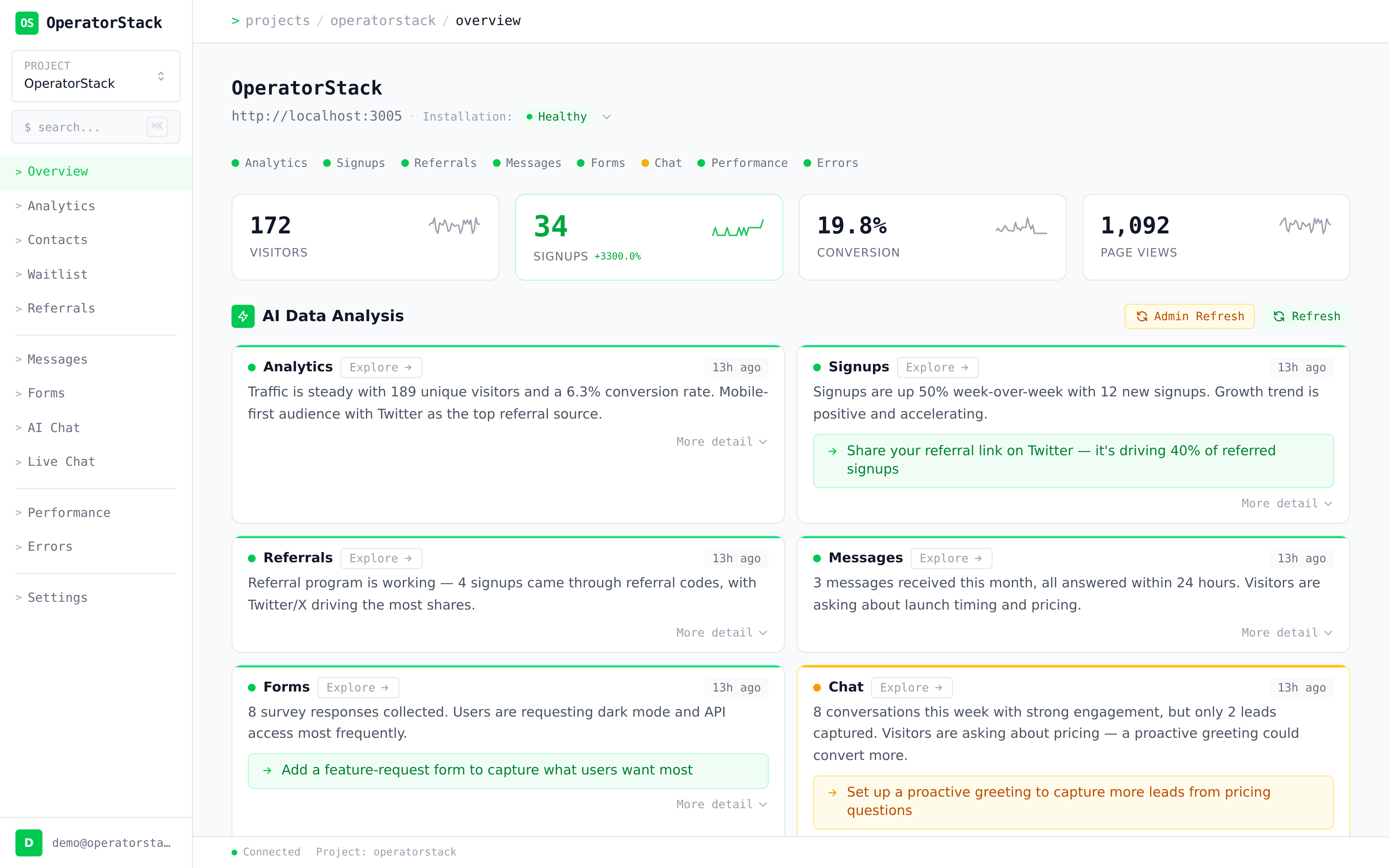 One script tag that gives your landing page waitlists, forms, analytics, AI chat, error tracking, and a unified contact list. Free tier, no cookies. Replaces the 10 tools you're currently duct-taping together to validate one idea.