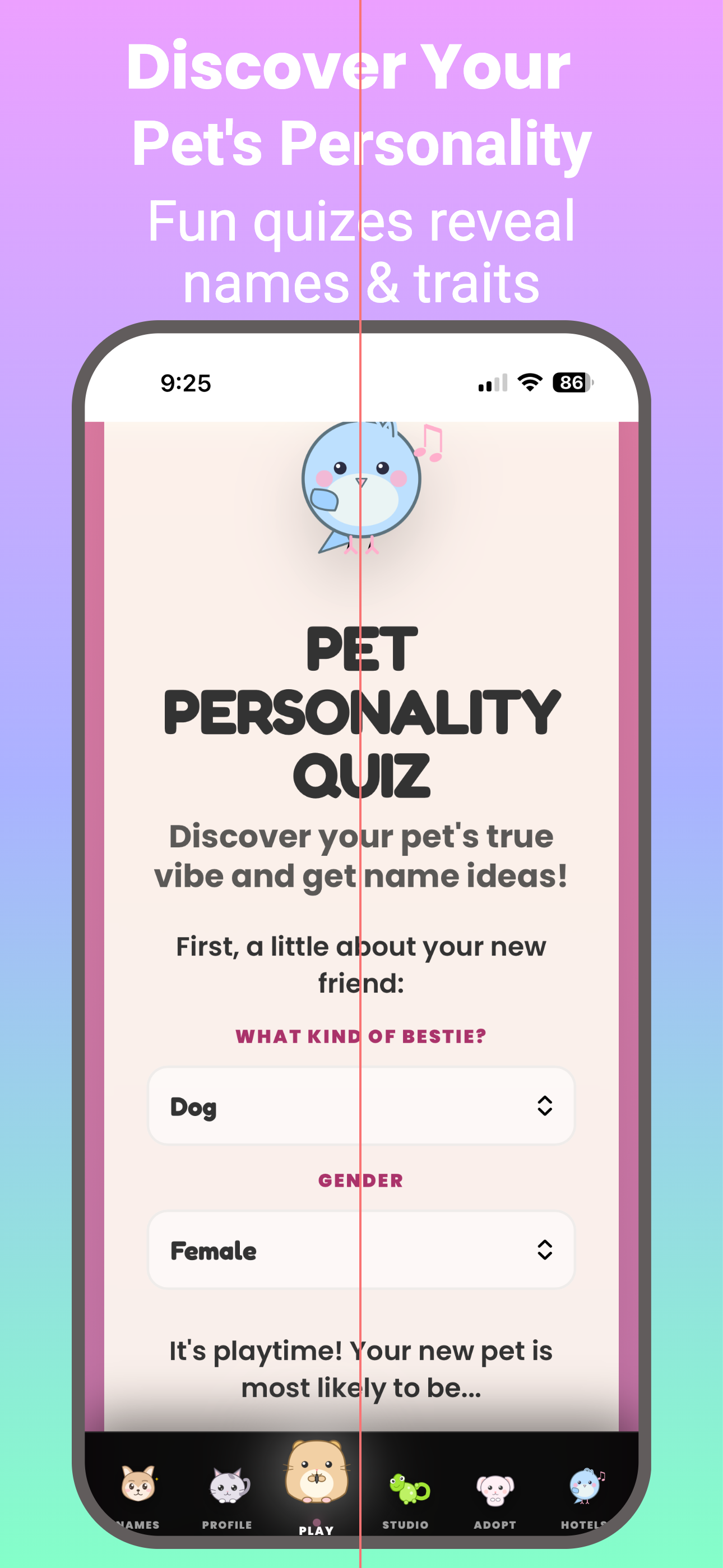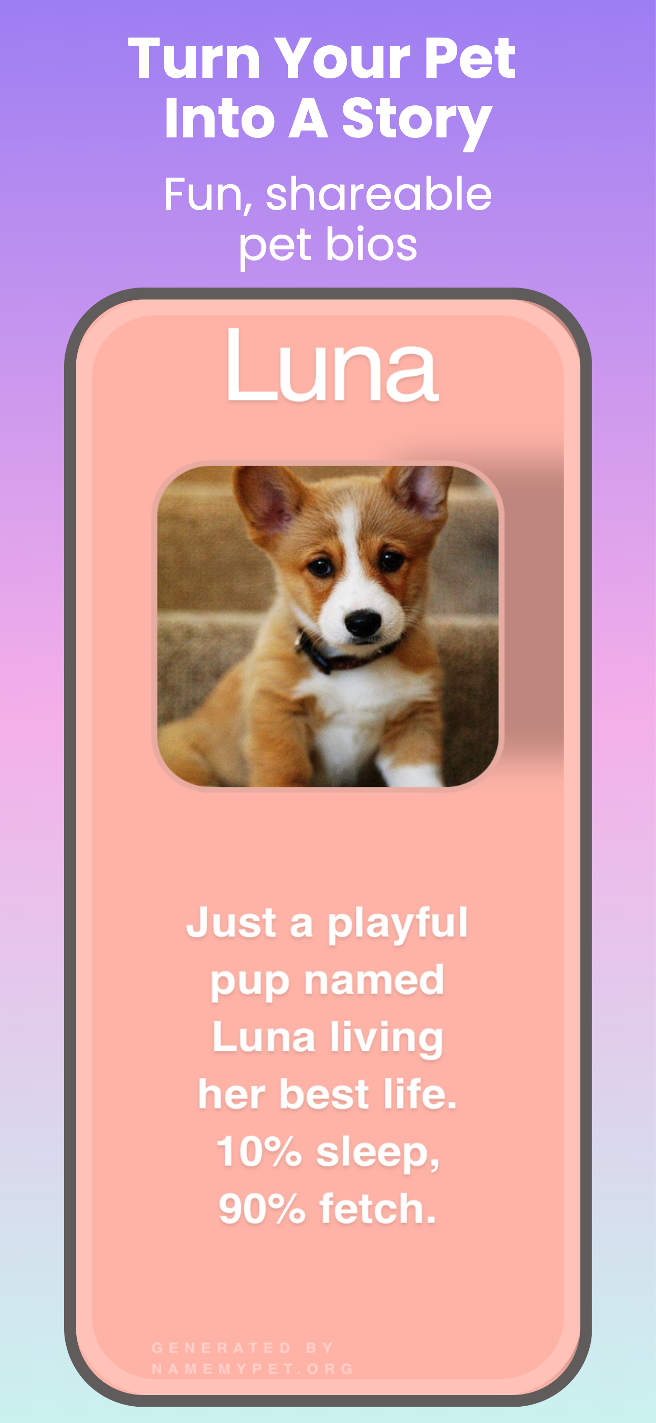 This app is a fun, creative space for people to celebrate their pets in a more personal way. It is not just focused on one feature. It brings together a mix of tools and experiences that help users explore their pet’s personality, create pet bios, discover name ideas, and enjoy playful pet-centered content all in one place. The idea behind it is that pets are part of the family, and people enjoy more than just caring for them. They enjoy showing their personality, celebrating what makes them unique, and sharing that experience in a way that feels lighthearted and personal. The app is also available in five languages, which helps make it more accessible and welcoming to a wider range of users. Overall, it is meant to be easy to use, enjoyable, and centered on the bond people have with their pets.