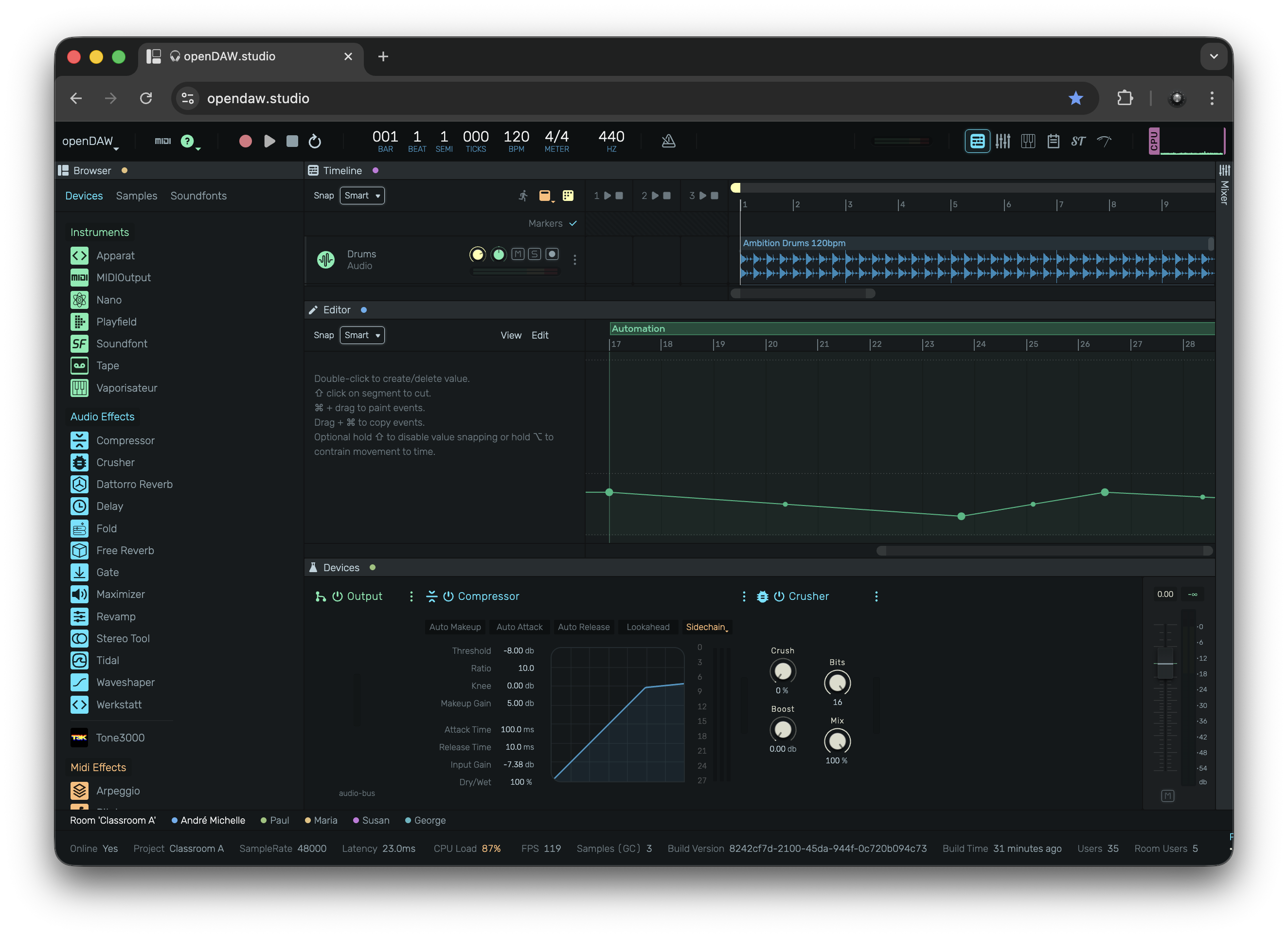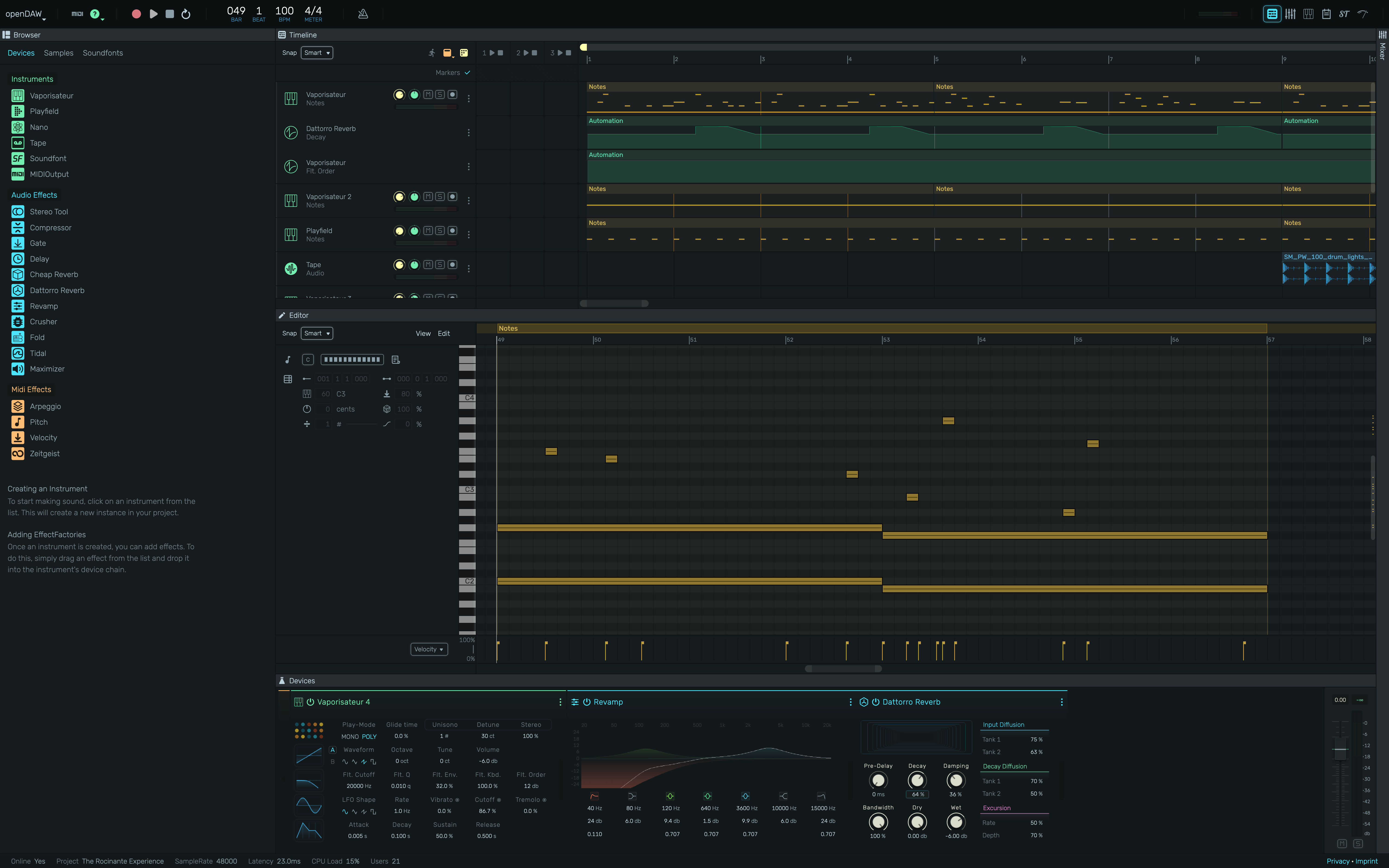 openDAW is a next-generation web-based Digital Audio Workstation (DAW) designed to democratize music production and to resurface the process of making music by making high-quality creation tools accessible to everyone, with a strong focus on education and data-privacy.