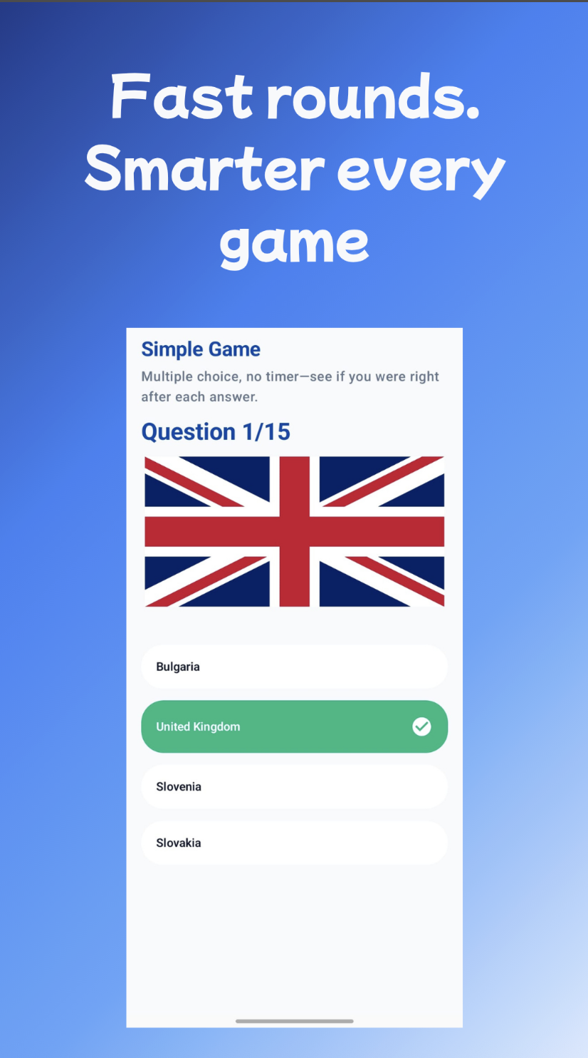 Flag quiz! Guess world flags, daily challenges & test your geography skills! Only Flags is the ultimate flag quiz game that challenges your geography knowledge, sharpens your memory, and keeps you coming back every single day. With multiple game modes and a sleek modern design, it's the most exciting way to master every flag on the planet!